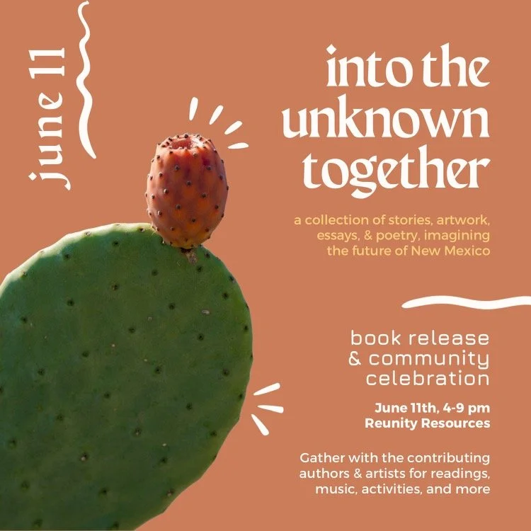 Into the Unknown, Together is a community climate anthology containing stories, artwork, essays, poetry and more from 33 contributors based in the eco-regions of New Mexico. The publication is a creative compilation of collective future visions imagining an equitable world beyond extraction and oppression in a time of climate adaptation.
